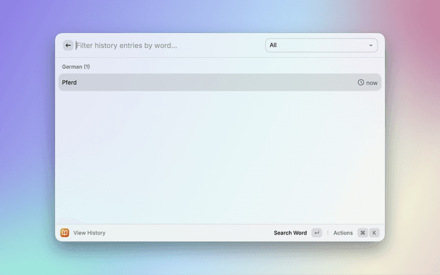 When searching, you can select a language from the list of available languages. If no language is selected, the extension will use the default language set in the command preferences.
