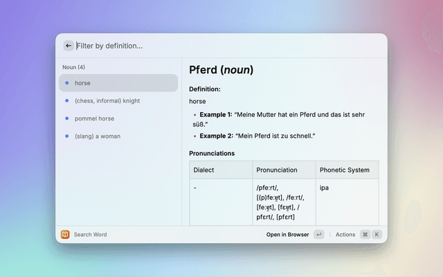 A simple Raycast extension to look up words and save definitions to a list of favorites.