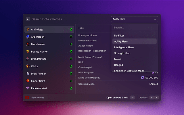 This extension allows you to view Dota 2 hero stats (and more in the future).