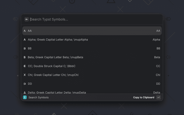 Search typst math symbols