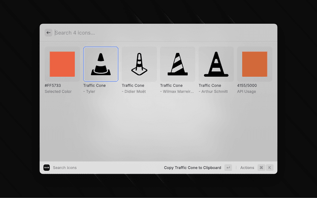 You'll need a personal API key to interact with the Noun Project through Raycast. There is a monthly 5,000 query limit on the free tier. To get your API key: