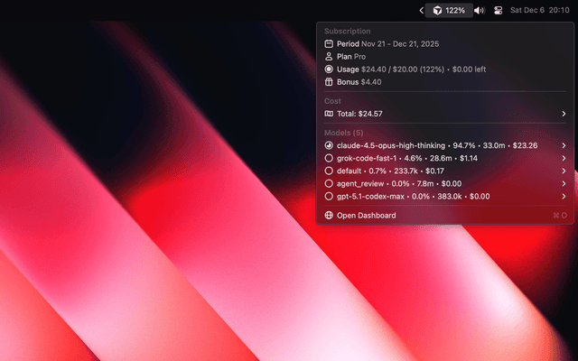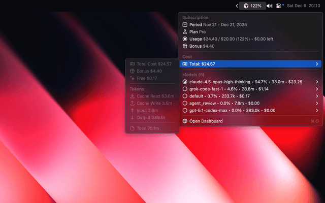 Track your Cursor costs in real-time directly from macOS menu bar