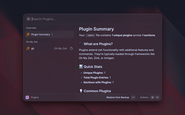 | 💾 Backup Manager | Manage zshrc backups | — |