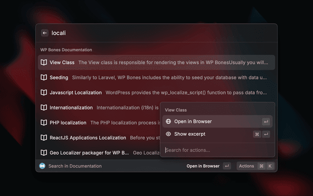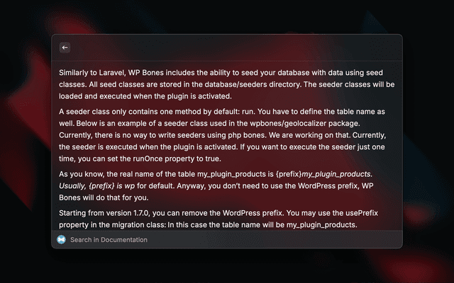 • Search in the WP Bones Documentation: Search the WP Bones documentation for a specific keyword.