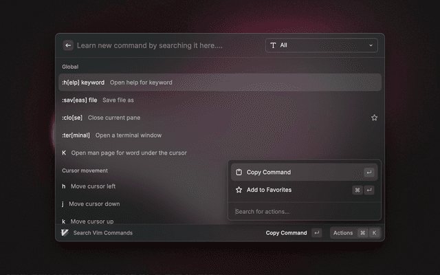 Learn vim commands without leaving your window.