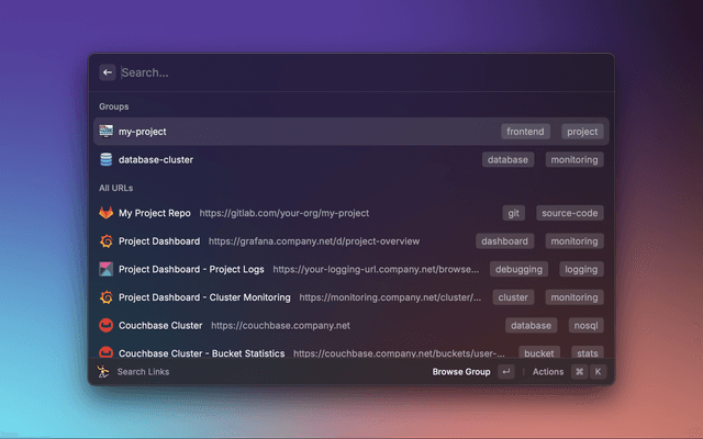 All product icons (e.g., GitLab, Grafana) are trademarks of their respective owners. They are used here solely to visually represent links to those services in a private productivity tool. This extension is not affiliated with or endorsed by any of the referenced companies.