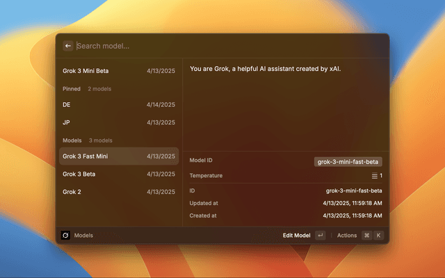 - Dynamic Model Discovery: Automatically fetches available models from xAI's API, ensuring you always have access to the latest models.
