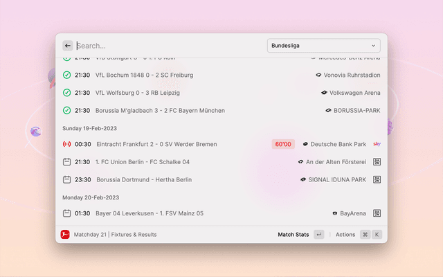 With the Bundesliga Extension, you can easily stay informed about your favorite teams and never miss a match.