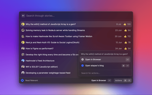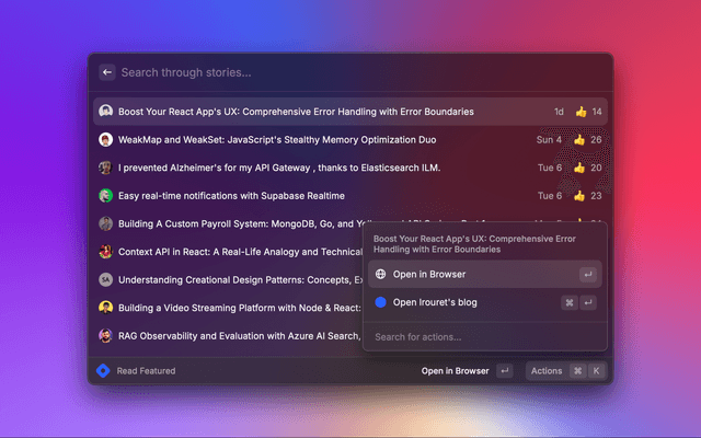 Raycast extension to read, search and create stories.