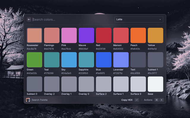 Catppuccin has hundreds of ports (such as the Catppuccin for Raycast port), covering a wide range of applications, tools, websites, and just about anything you can imagine!