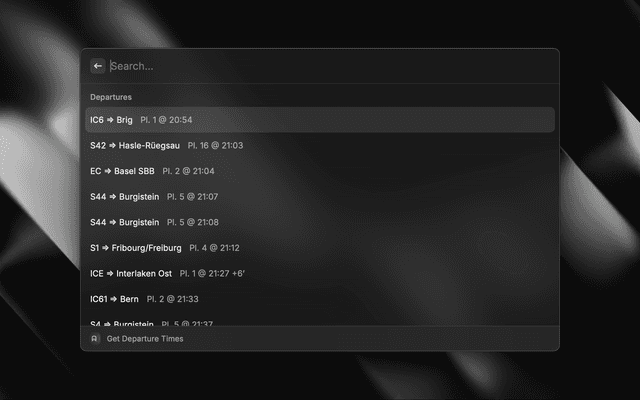 Gets departure times at train and bus stations in switzerland.