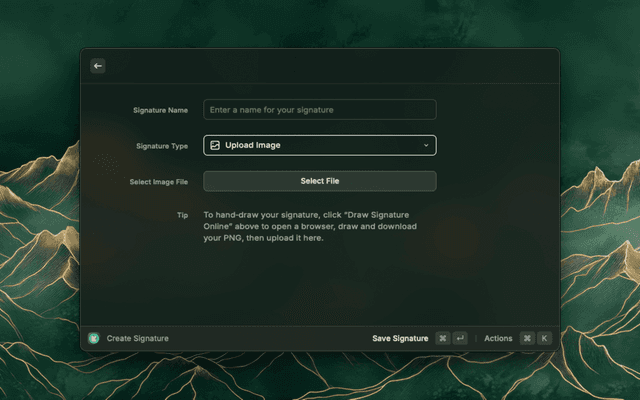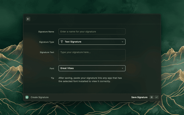 A lightweight Raycast extension for creating, saving, and instantly copying your e‑signature.