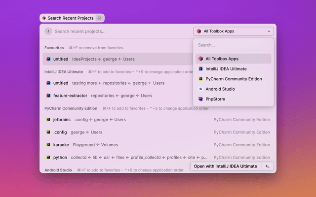 JetBrains Toolbox Search Recent Projects