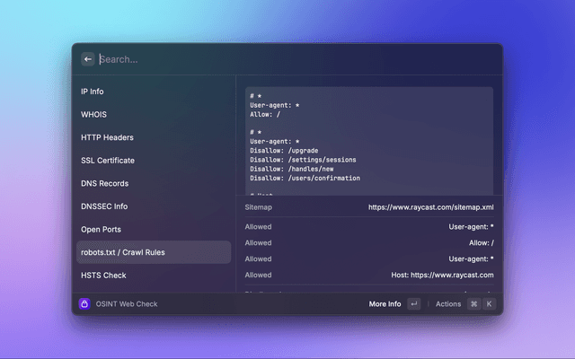 The OSINT Web Check extension is an extension to deploy some OSINT (Open Source Intelligence) checks against a provided URL, inspired by web-check by Lissy93.