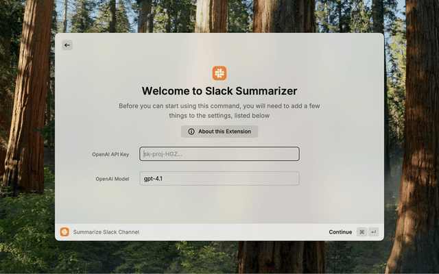 Summarize any Slack channel or thread directly from Raycast using OpenAI. Perfect for catching-up after vacations, keeping stakeholders in the loop, or turning noisy discussions into succinct, bullet-point briefs.