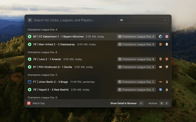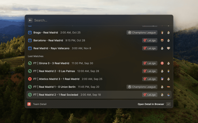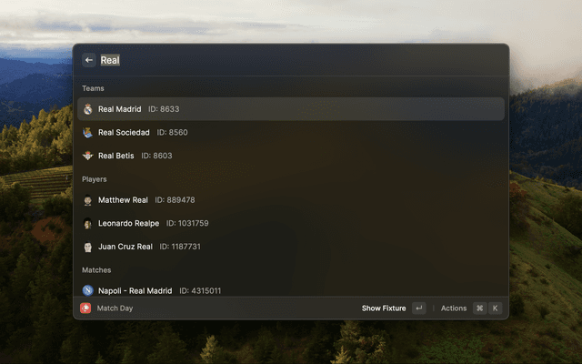 Unofficial Fotmob extension for Raycast