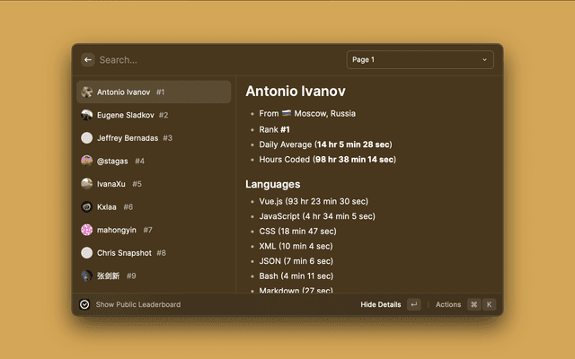 Raycast extension to view your coding stats and rank from wakatime.com