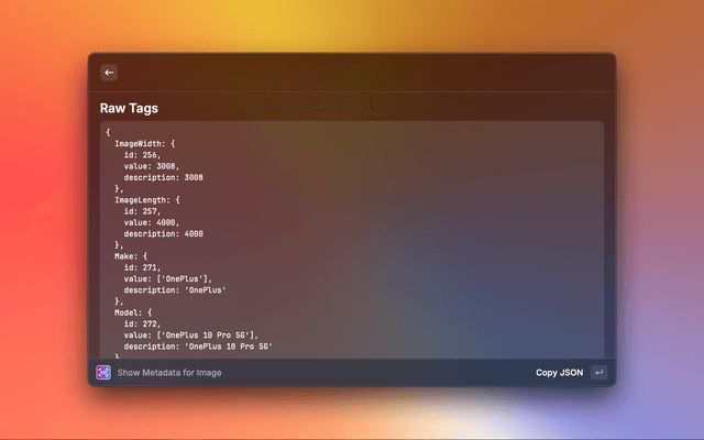 Show metadata (EXIF) for images from clipboard or URL