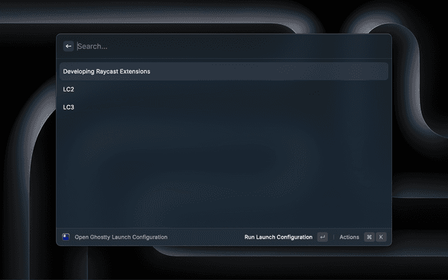Launch configurations let you quickly open Ghostty windows, open tabs, navigate to folders and enter commands. They're inspired by Warp's launch configurations. If you had already created a launch configuration in Warp, you can copy it into this extension.