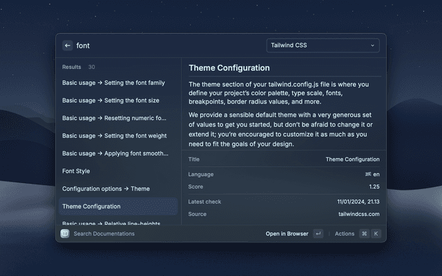 Allows you to search through different documentation services, so you can spend less time on your browser and focus on your code!