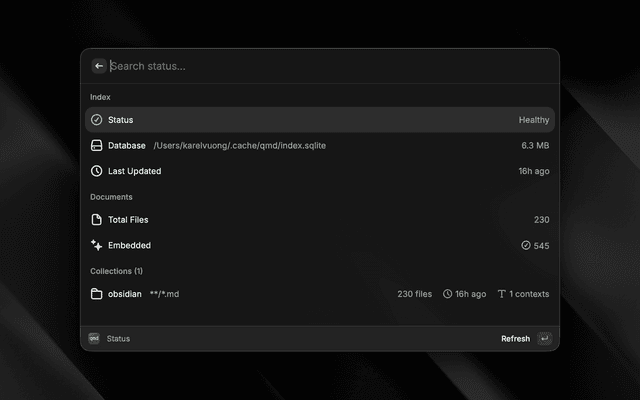 A Raycast extension for QMD - an on-device search engine for markdown files.