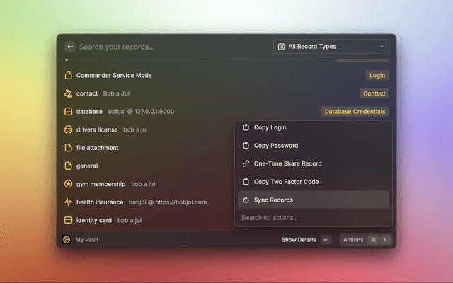 A comprehensive Raycast extension that provides seamless access to your Keeper Security vault directly to your macOS desktop. Manage records, generate secure credentials, and access your vault records without leaving your workflow.