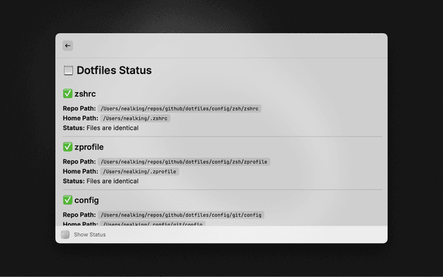 A powerful Raycast extension for managing your dotfiles with ease. Keep your configuration files synchronized between your local machine and your dotfiles repository.