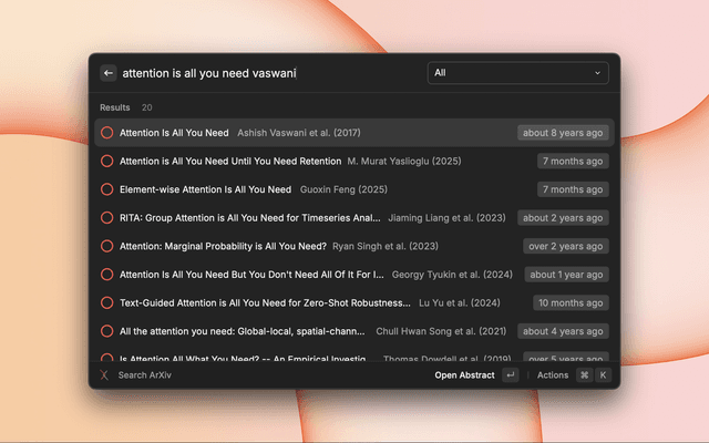 - Open Raycast and search for "Search ArXiv"