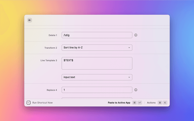 Text Shortcuts removes the need to perform repetitive tasks manually on your text.