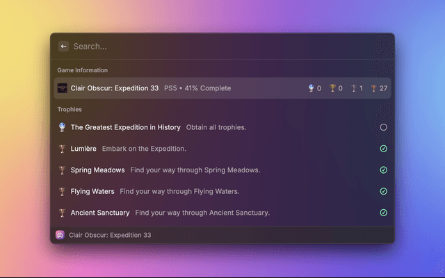 • 🔍 Search Functionality: Quickly find specific games or trophies