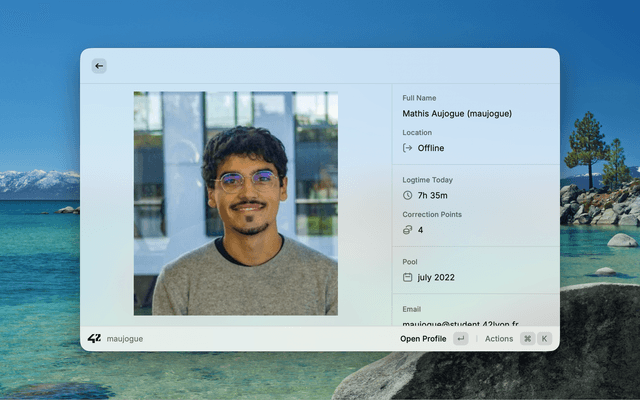 Track your logtime and find peers in 42 school clusters directly from Raycast