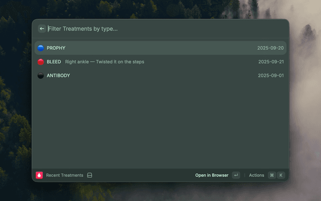 The extension includes two commands, Recent Treatments and Log Treatment.