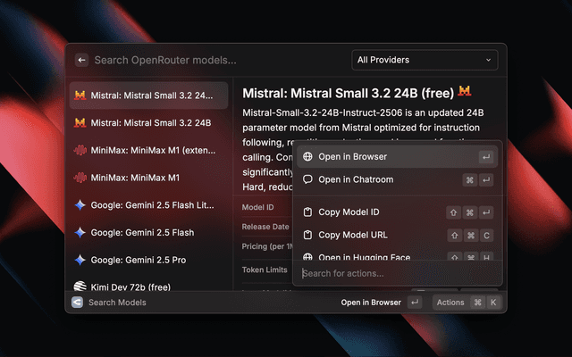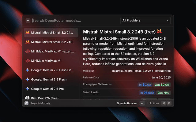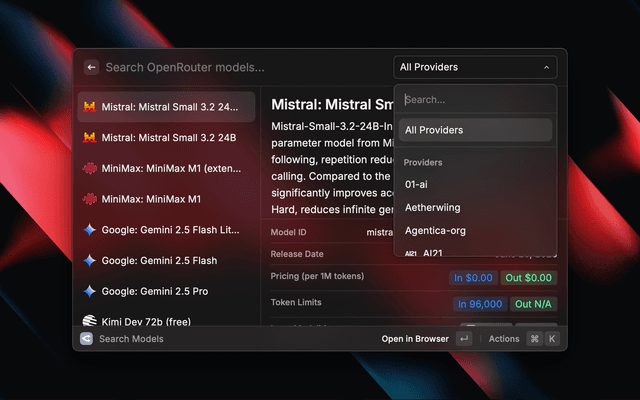 Search OpenRouter's AI model catalog.