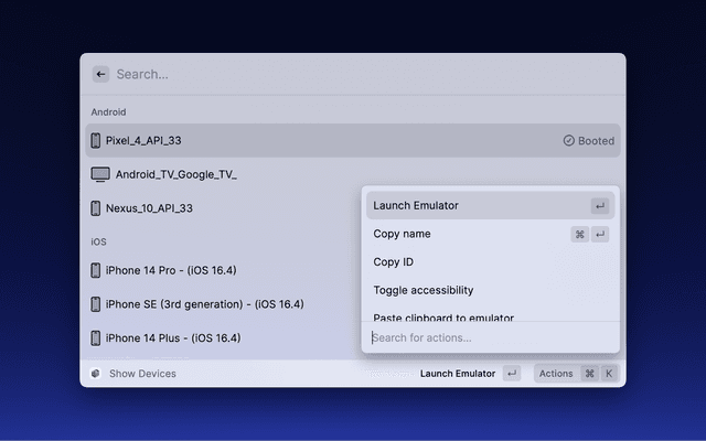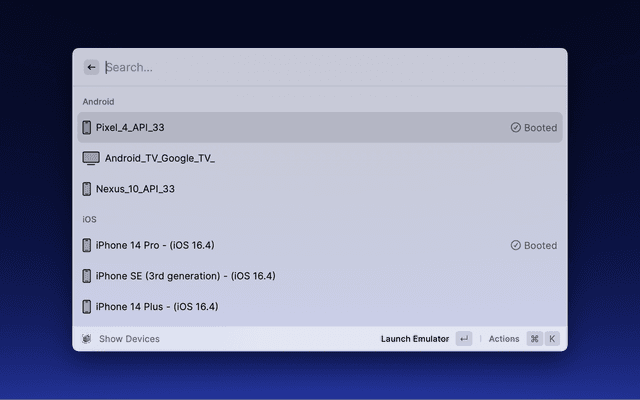This extension allows to easily manage MiniSim from Raycast.