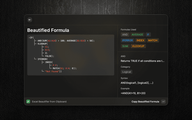 - Live Input: Type or paste a formula and see it beautified instantly, with error feedback as you go.