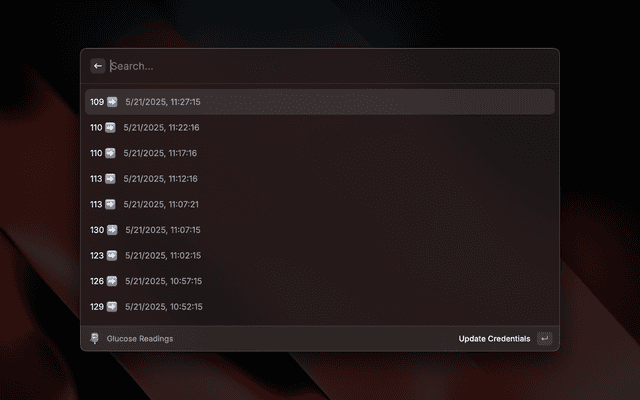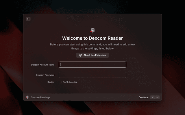 A Raycast extension that allows you to view your Dexcom glucose readings directly from Raycast. This extension provides a convenient way to monitor your blood glucose levels without having to open the Dexcom app on your phone.