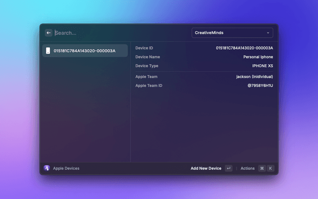 • Apple Devices: View, create, and edit Apple devices registered with your Expo account.