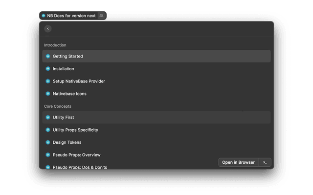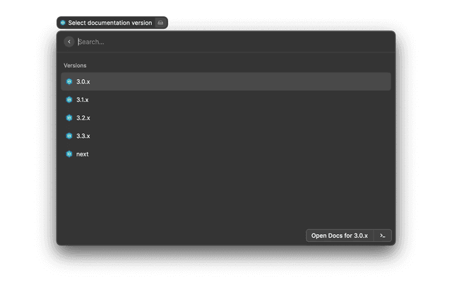 Interface with the Dash application, allowing users to quickly search through documentation sets.