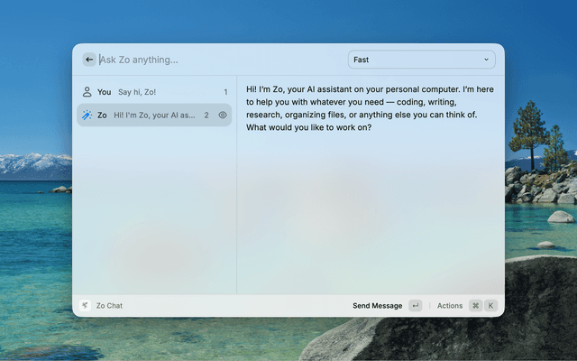 • Zo API client (/models/available, /zo/ask)
