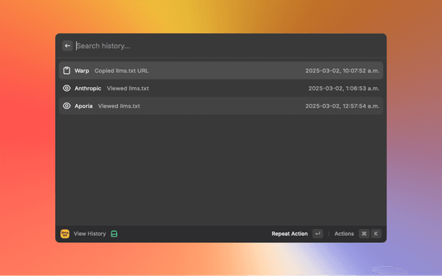 • ๐Ÿ“œ History Tracking: Keep track of your previously viewed and copied llms.txt files
