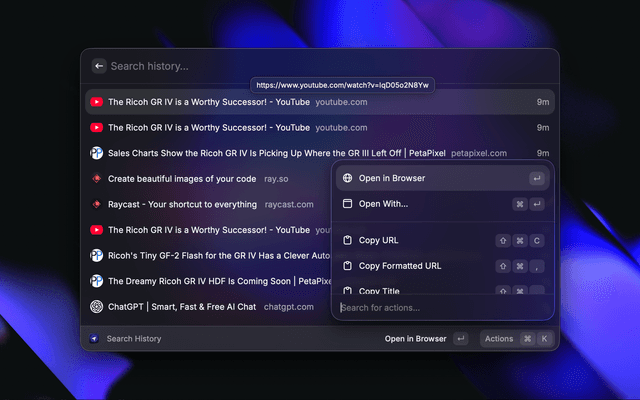 Search your history and bookmarks of ChatGPT Atlas, OpenAI's new browser.
