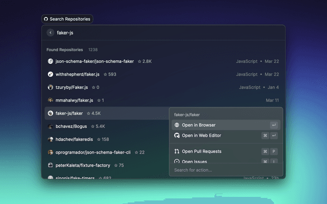 Work with issues, pull requests, manage workflows, search repositories and stay on top of notifications