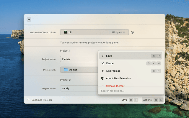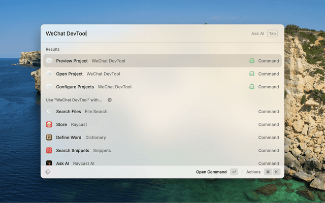 - Open Project - Open configured mini program project via WeChat DevTool CLI.