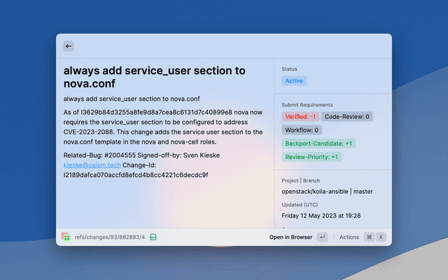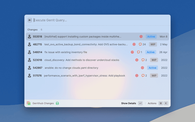 This extension allows browsing and viewing Gerrit projects and changes using the REST API endpoint.