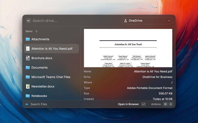 - Search across OneDrive and SharePoint document libraries