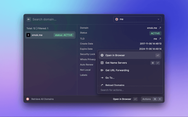 This is a Raycast extension for Porkbun. With this extension, you can:
